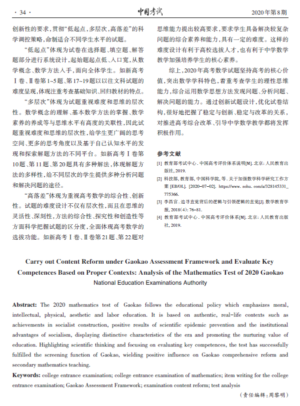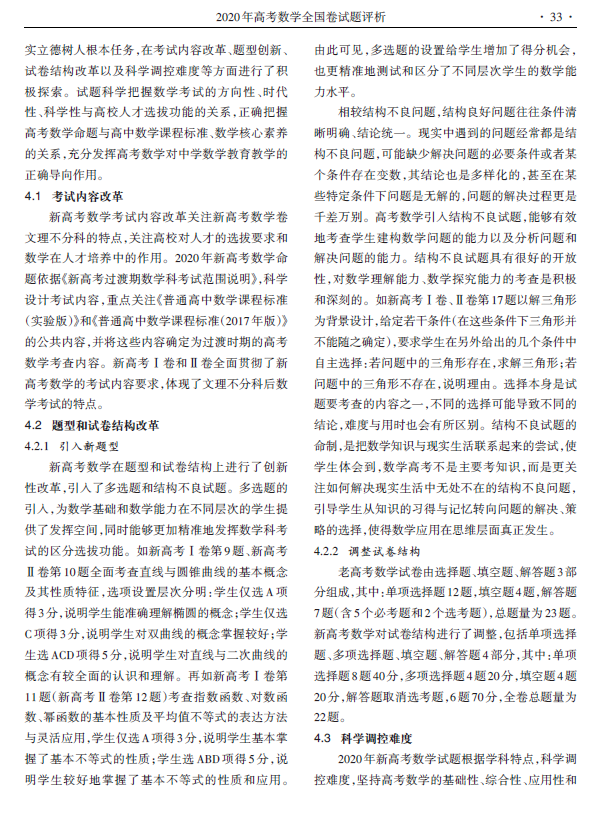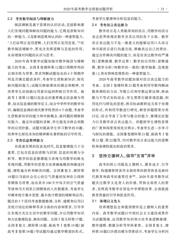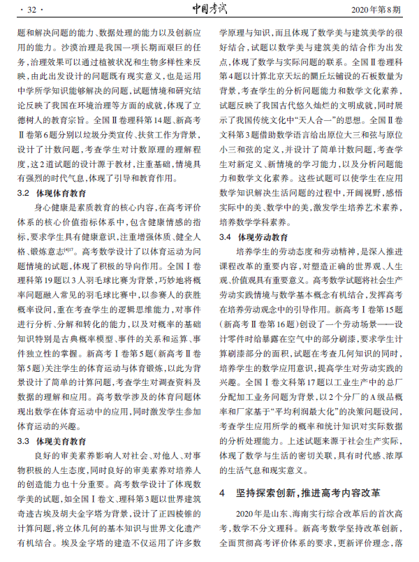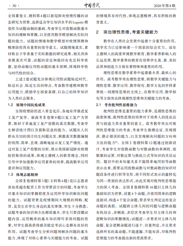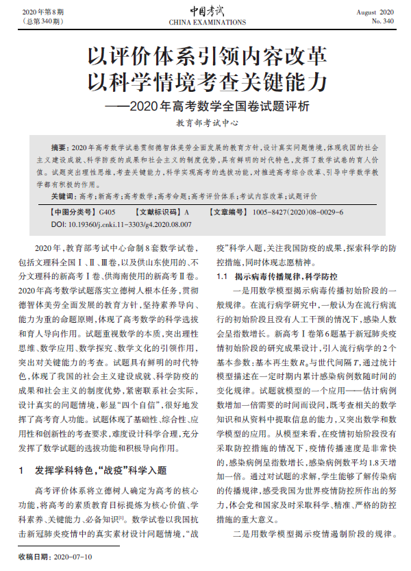 2020年高考数学全国卷试题评析:以评价体系引领内容改革 以科学情境考查关键能力 -九游游戏app